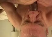 Homo opa staat voor over gebukt om anal geneukt te worden door een grote negerlul, zijn stijve negerlul schuift langzaam in de anus van de opa homo en verdwijnd dan helemaal in hem en neukt zijn anus hard.